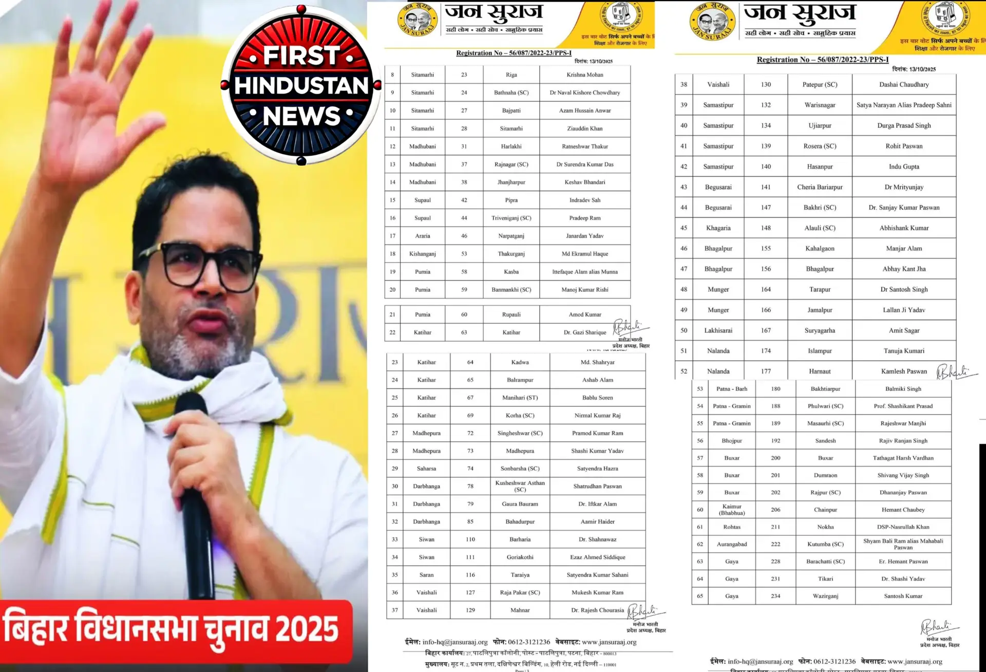 बिहार विधानसभा चुनाव 2025 के लिए जन सुराज पार्टी ने 66 सीटों पर उम्मीदवारों की दूसरी सूची जारी कर दी है। इस सूची में महिला, पिछड़े, अनुसूचित जाति और अल्पसंख्यक समाज को विशेष महत्व दिया गया है। पार्टी के अनुसार सभी जिलों में स्थानीय प्रतिनिधित्व को प्राथमिकता दी गई है और समाज के विभिन्न वर्गों को जगह देने का प्रयास किया गया है।
